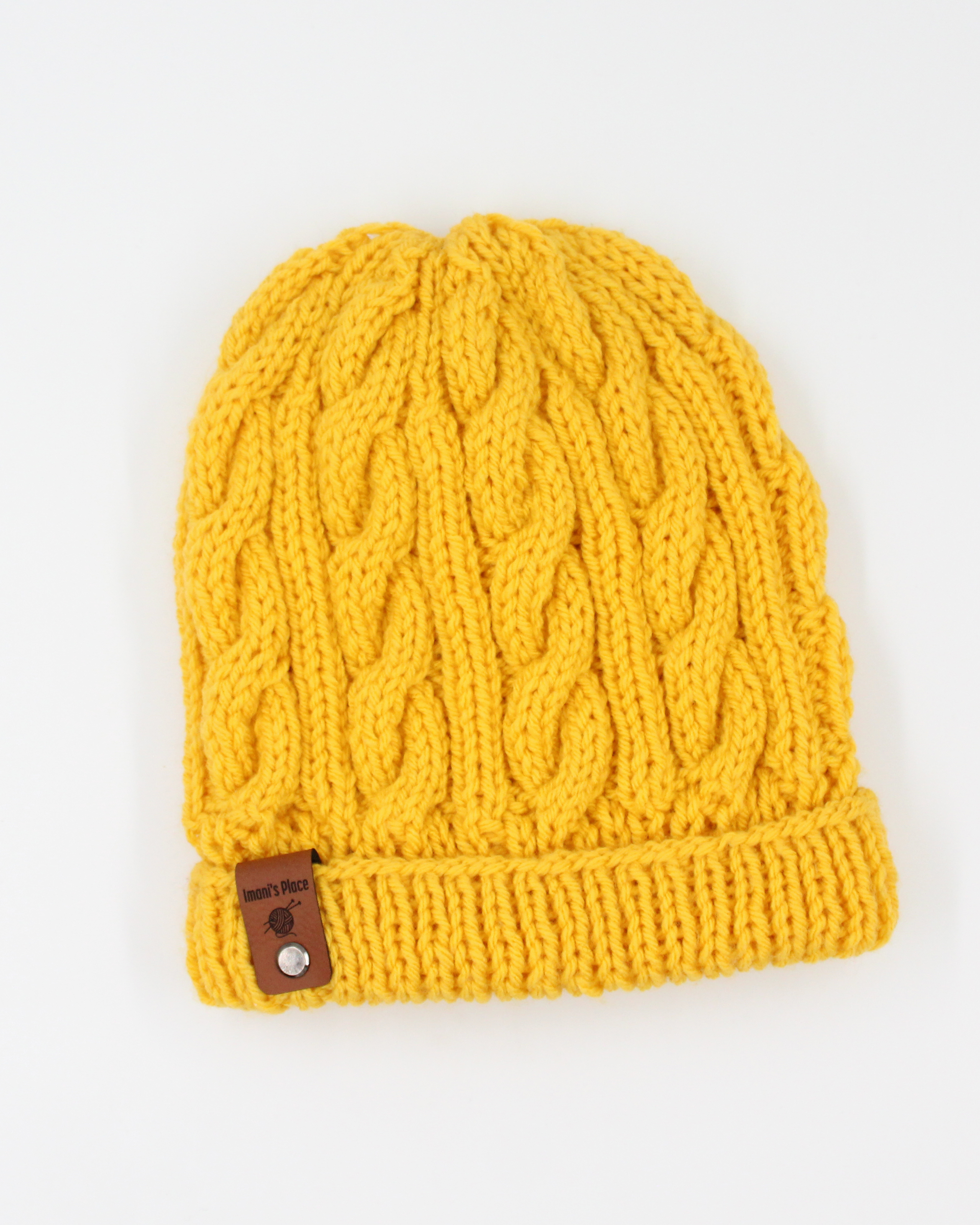 - Hat – circumference: 14″ unstretched; height 8.5″ cuffed